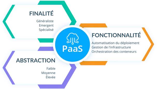 Les solutions PaaS sont de plus en plus axées sur l'automatisation du cycle complet des processus de déploiement et de livraison des applications. Cela permet aux développeurs de se concentrer davantage sur la conception des applications et leur mise en œuvre plutôt que sur des tâches routinières ou complexes qui prennent beaucoup de temps, comme la configuration des serveurs et du stockage, la sécurité des applications et des infrastructures, la scalabilité, l'équilibrage des charges, etc. On peut considérer qu'il existe trois niveaux d'abstraction du PaaS : faible, moyen et élevé.