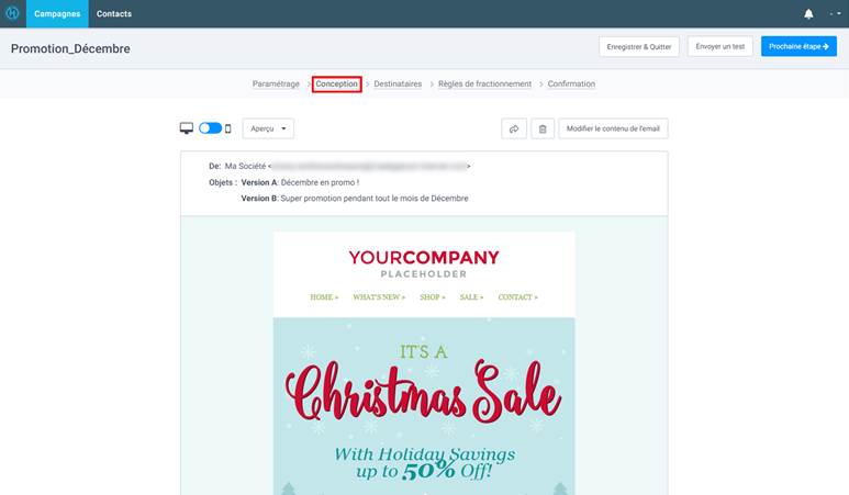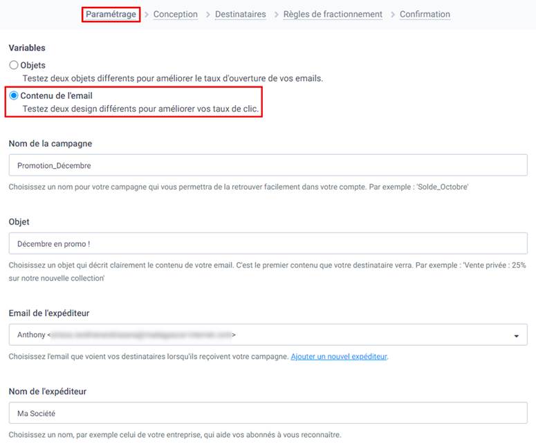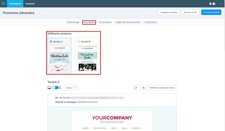 Voici donc les étapes à suivre pour créer une campagne email de test A/B.