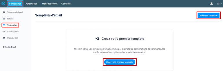 1. Dans l’onglet Campagnes, allez à la section Templates et cliquez sur Créer mon premier template ou sur Nouveau template.