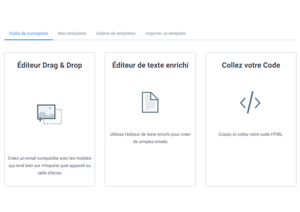 - Un Editeur Drag & Drop : il vous suffit de glisser-déposer vos images et textes pour créer facilement votre email qui sera compatible avec tout type d’appareil