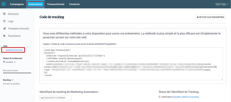 1. Allez dans l’onglet Automation puis cliquez sur Installation du script.