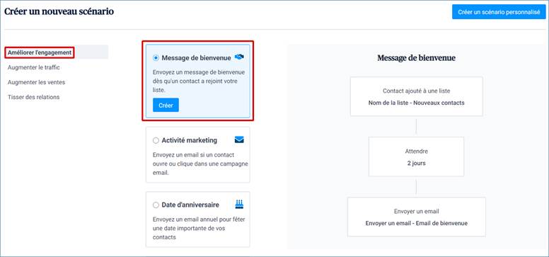Voici donc comment créer ce scénario de bienvenue à partir d’un modèle prédéfini.
