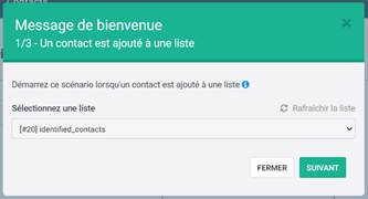 3. Sélectionnez une liste. Le scénario sera lancé quand un nouveau contact sera ajouté à cette liste. Par défaut, un dossier nommé [marketing_automation] sera automatiquement créé contenant la liste « identified_contacts ».