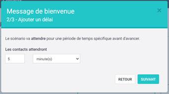 4. Ajoutez un délai. Nous avons choisi ici de mettre 6 minutes. Une fois que le contact se sera inscrit et sera donc ajouté à votre liste, le scénario attendra 6 minutes et passera automatiquement à l’étape suivante.