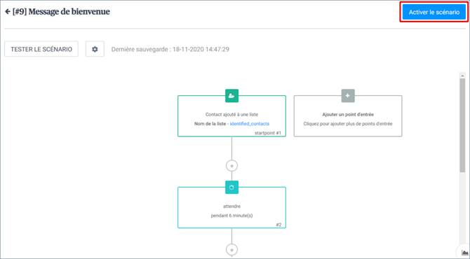 7. Il ne vous reste plus qu’à Activer le scénario. Vos contacts nouvellement inscrits rentreront désormais dans votre scénario de bienvenue