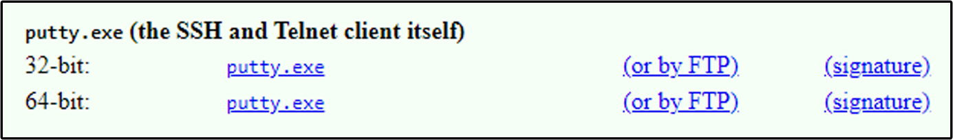 Téléchargez et exécutez votre client SSH, par exemple PuTTY (allez sur https://www.chiark.greenend.org.uk/~sgtatham/putty/latest.html pour le télécharger).