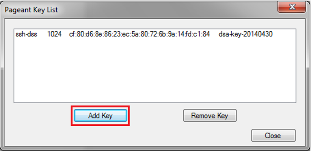 Note : Pour ajouter votre clé SSH privée avec PuTTY, téléchargez et exécutez l'outil Pageant (https://www.chiark.greenend.org.uk/~sgtatham/putty/latest.html), cliquez sur le bouton Add Key et choisissez le fichier de clé SSH approprié.