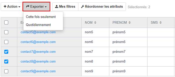 Le bouton Exporter vous permet d’exporter vos contacts sélectionnés dans un fichier au format CSV.