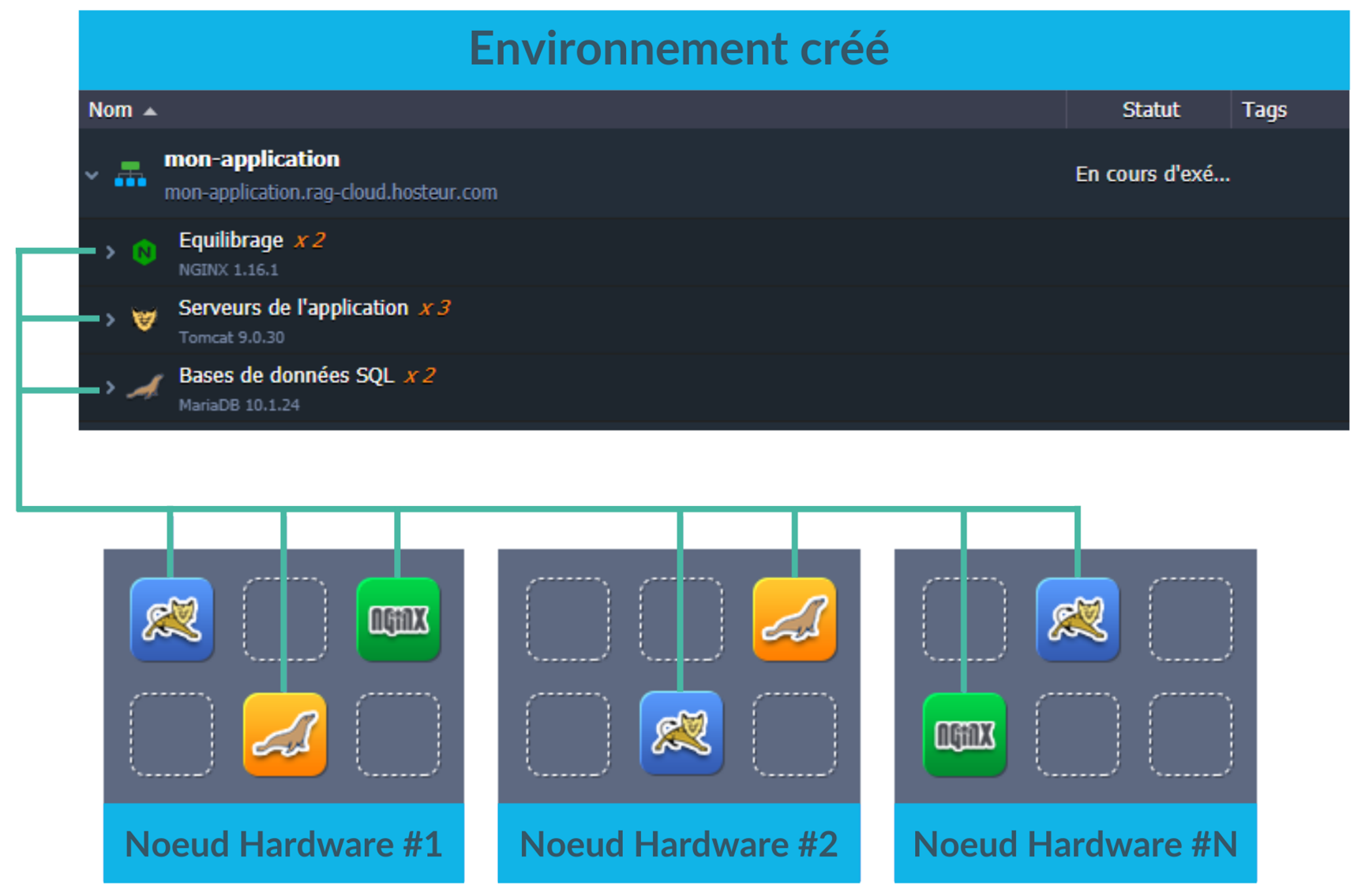 Tous les serveurs nouvellement ajoutés sont créés sur différents nœuds hardware, ce qui leur confère une fiabilité et une disponibilité élevées.