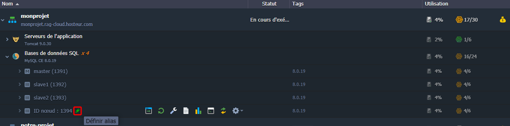 La spécification de l'alias (nom alternatif) pour un environnement ou un nœud séparé peut grandement faciliter le processus de leur gestion. Cela clarifie l'élément avec lequel vous travaillez, de sorte que vous ne ferez jamais d'erreur en choisissant l'environnement/le nœud qui doit être ajusté.