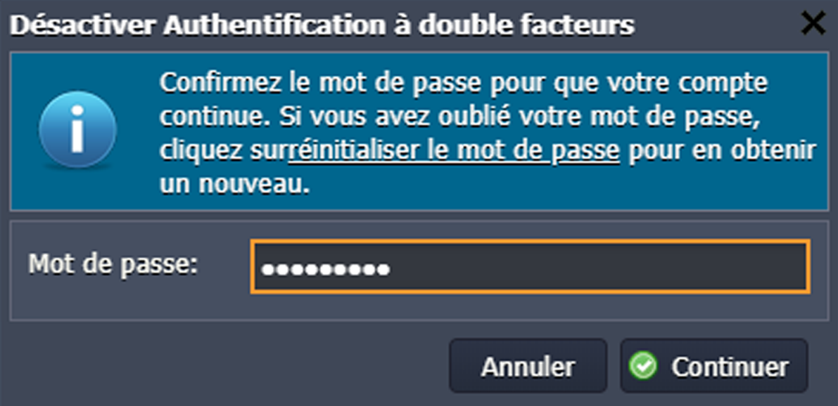 Vous devez confirmer votre mot de passe dans la fenêtre qui apparaît pour continuer.