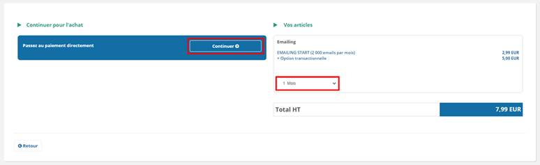 Cliquez sur le bouton Continuer pour passer au paiement.