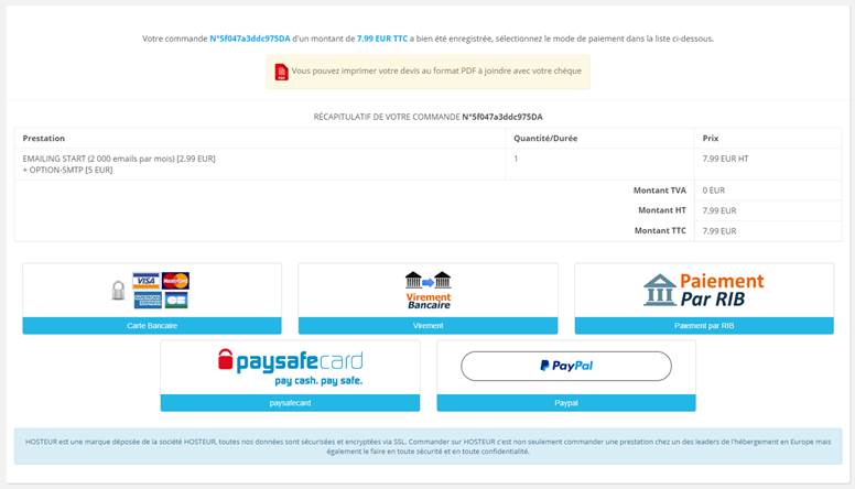Voilà ! Votre compte HOSTEUR Emailing sera activé une fois votre paiement effectué.