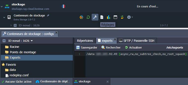 - Les deux instances se trouvent à l'intérieur du même compte RAGNARØKKR : soit exporter les données du stockage, soit monter les données sur les clients (la plate-forme gère automatiquement la deuxième opération).