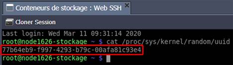 En outre, une option fsid supplémentaire devrait être obligatoirement ajoutée à la chaîne de configuration de l'exportation. Par exemple, la valeur de ce paramètre peut être générée de manière aléatoire avec la commande suivante :