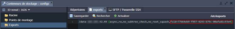 - no_root_squash : donne à l'utilisateur root sur le serveur d'un client le même niveau d'accès qu'à un utilisateur root sur un conteneur de stockage