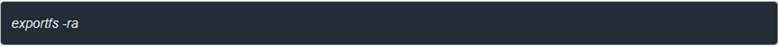 4. Pour appliquer de nouveaux paramètres d'exportation, il convient d'utiliser la commande exportfs correspondante (par exemple via Web SSH) :