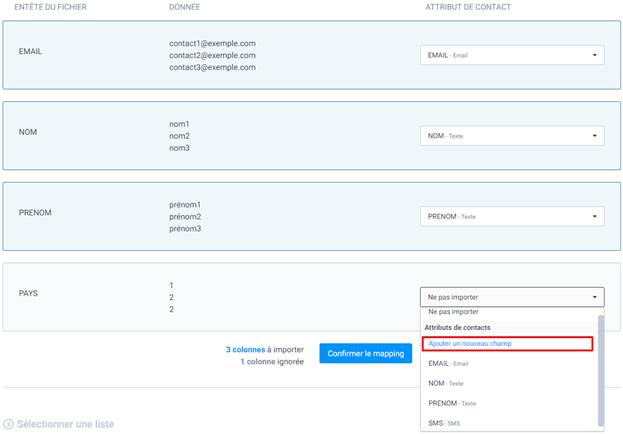 1. Créer un attribut au cours de l’importation des contacts
