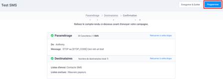 Si tout est bon, vous pouvez Programmer l’envoi de votre campagne SMS.