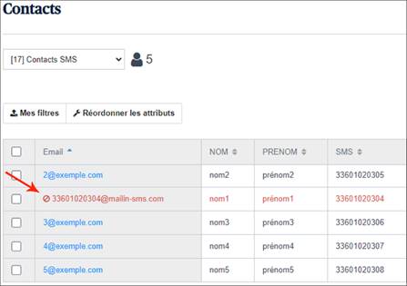 Les contacts que vous importez dans HOSTEUR Emailing doivent comporter une adresse email. Dans le cas où vous ne fournissez pas cette information pour un contact donné lors de l’importation, une adresse email fictive (qui ne pourra pas être utilisée) du type numérodetélé[email protected] lui sera attribuée. Ce contact s’affichera en rouge dans votre page de contacts.