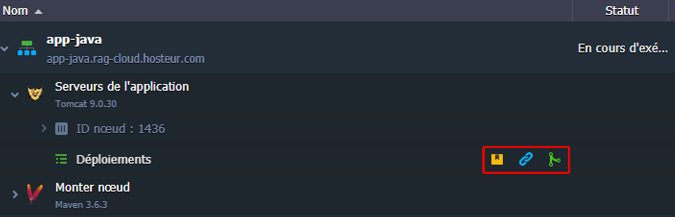 • Boutons de déploiements d'un serveur d'application