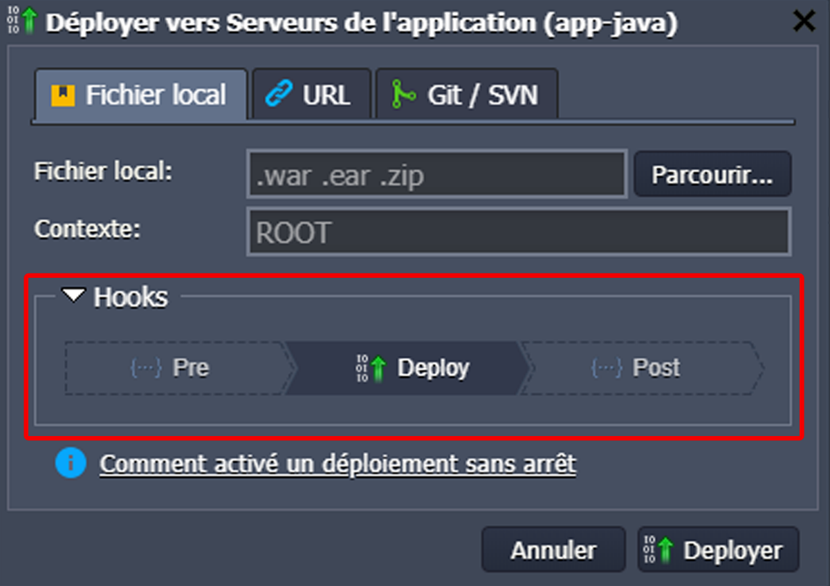 Déploiement avec utilisation de Hooks