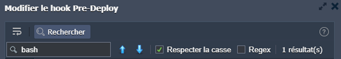 • Rechercher : permet de trouver facilement les informations nécessaires ; est fourni avec les options de recherche supplémentaires Respecter la casse et Regex