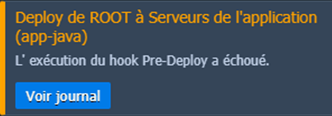 Note : En cas de problème lors de l'exécution du crochet, vous recevrez la notification appropriée, tandis que le processus de déploiement sera interrompu :