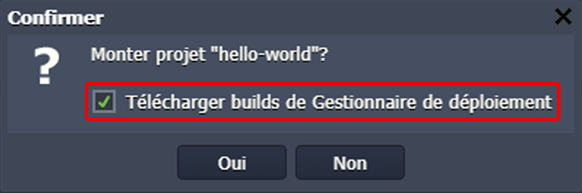 Remarque : le projet créé avec cette option peut être automatiquement téléchargé dans le gestionnaire de déploiement en tant qu'archive en cochant la case Télécharger builds de Gestionnaire de déploiement.