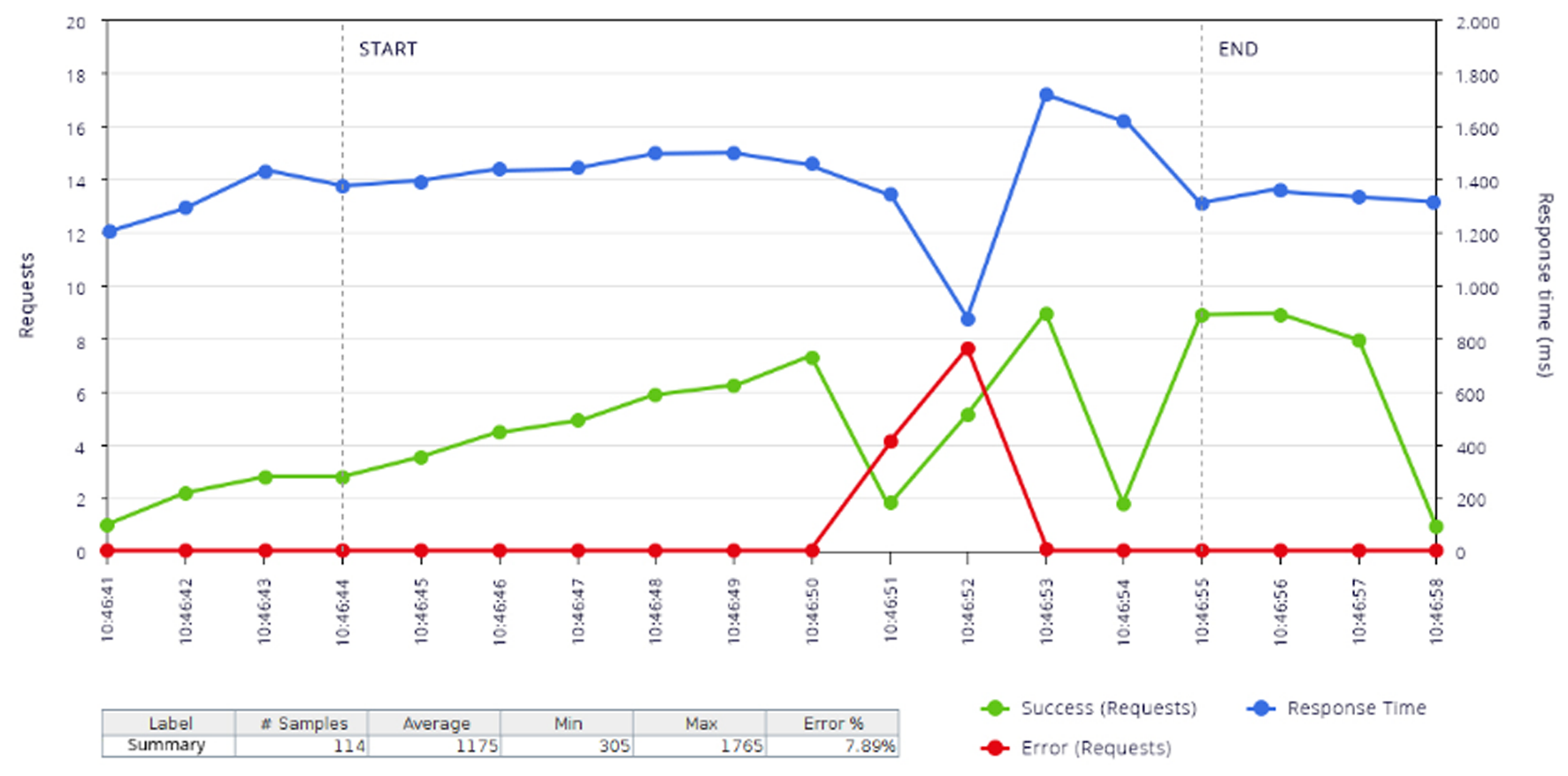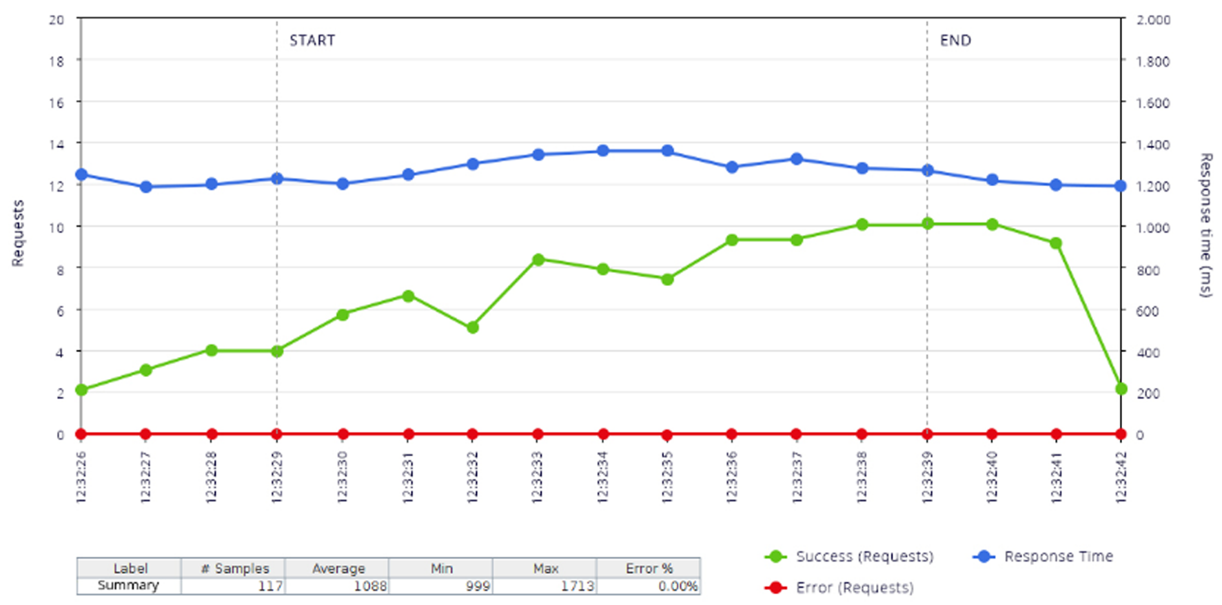 • Outil de génération de charge : Apache JMeter, configuré pour envoyer en permanence le nombre requis de requêtes simultanées à notre application pendant le processus de redéploiement