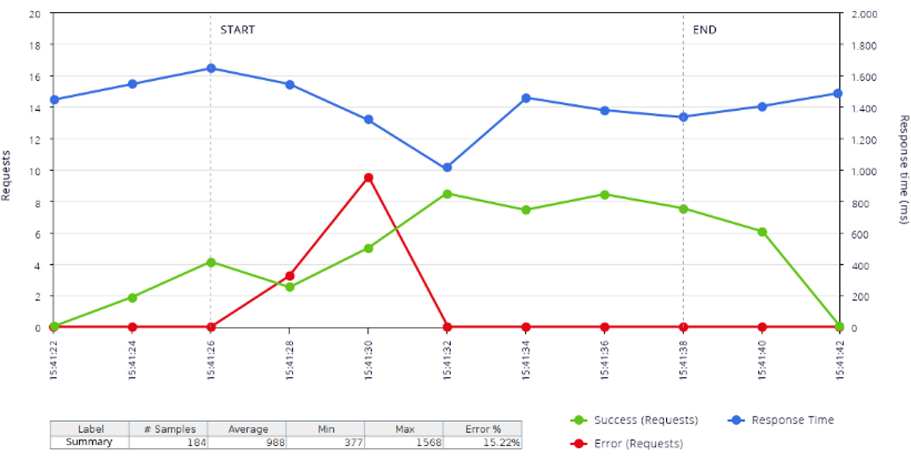 • Le délai : le test commence peu de temps avant que le processus de redéploiement ne soit lancé et se termine quelques secondes après son achèvement