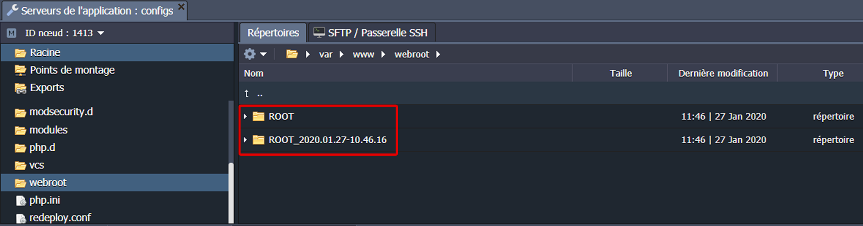 4. Lors du deuxième déploiement (c'est-à-dire lors du déploiement d'une mise à jour), un nouveau dossier ROOT_timestamp est créé. De cette manière, la version réelle de l'application et les clients qui travaillent actuellement avec elle ne sont pas influencés.