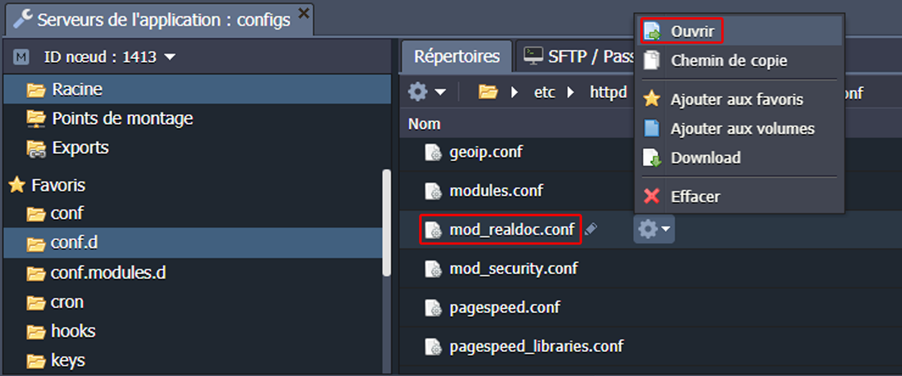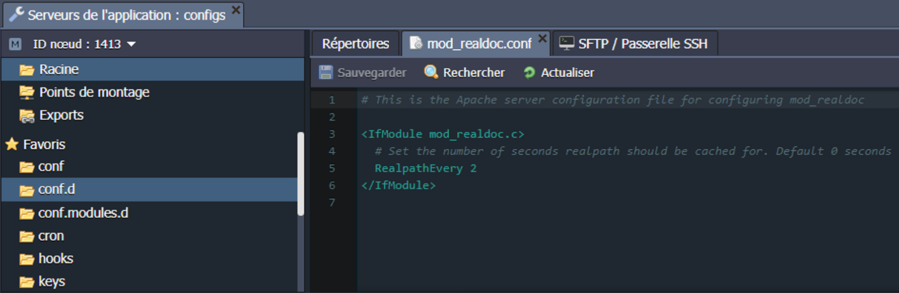 La fonctionnalité appropriée est traitée à l'aide du module mod_realdoc, qui contrôle la commutation de liens symboliques mentionnée ci-dessus. Il peut être configuré en plus (si nécessaire) par le biais du tableau de bord RAGNARØKKR dans le fichier conf.d > mod_realdoc.conf.