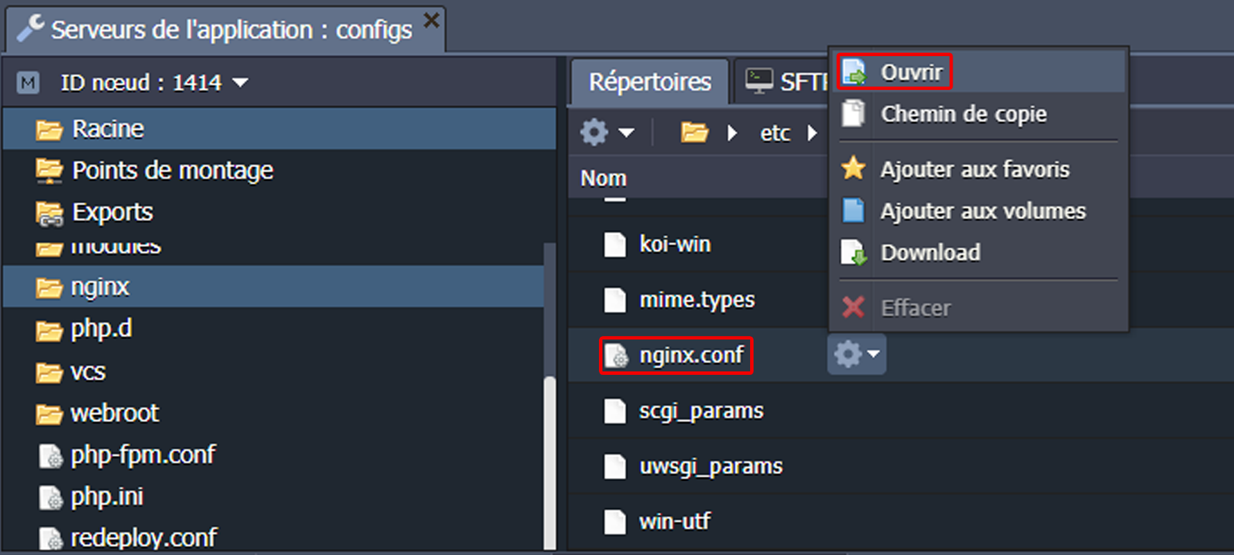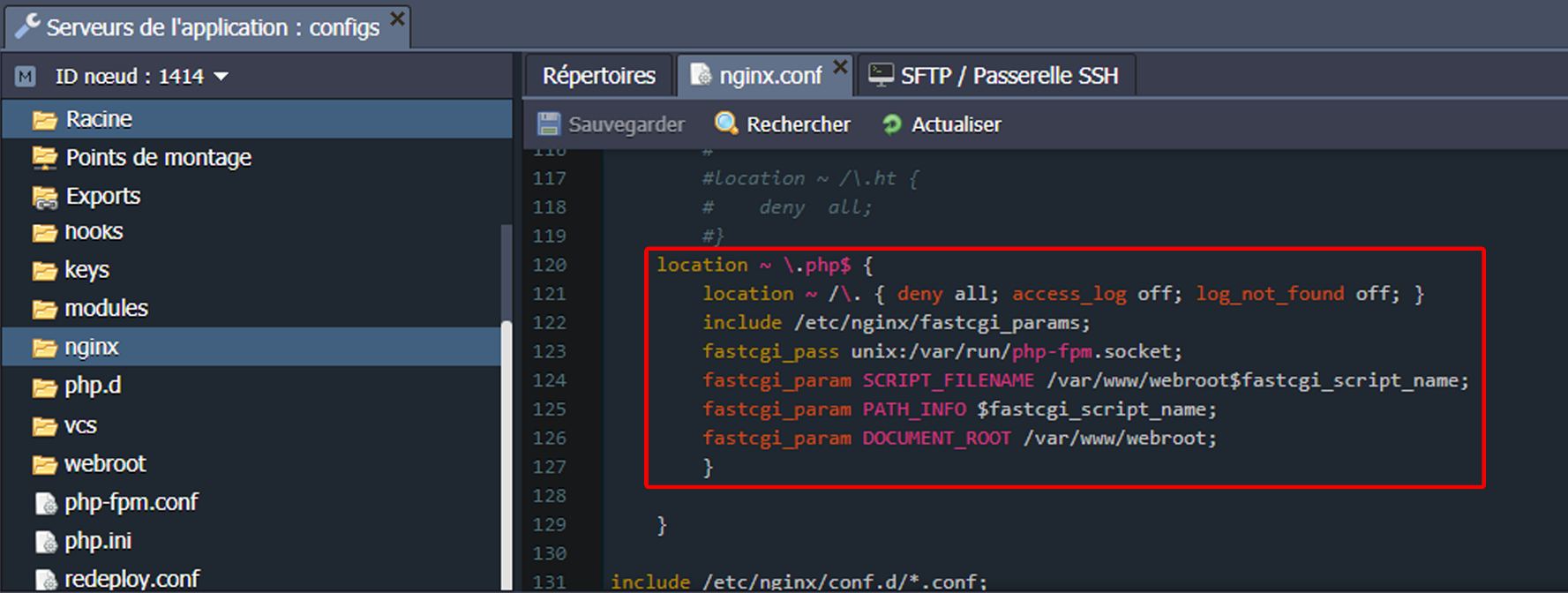 Ici, le déploiement atomique est assuré au moyen de la fonctionnalité intégrée sans inclusion de modules supplémentaires. Les paramètres correspondants se trouvent à la toute fin du fichier nginx > nginx.conf :