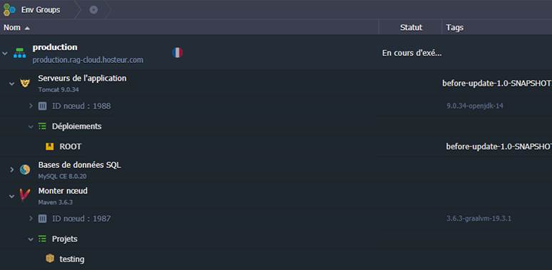 1. Tout d'abord, naviguez vers votre environnement de production RAGNARØKKR avec l'application nécessaire (c'est-à-dire que vous voulez mettre à jour et tester) déployée et en cours d'exécution. Dans notre cas, cet environnement se nomme « production ».