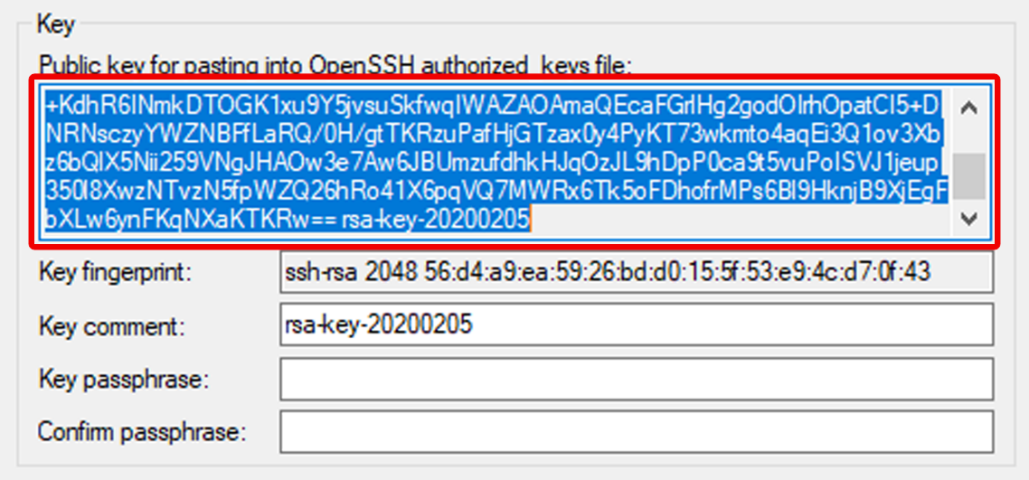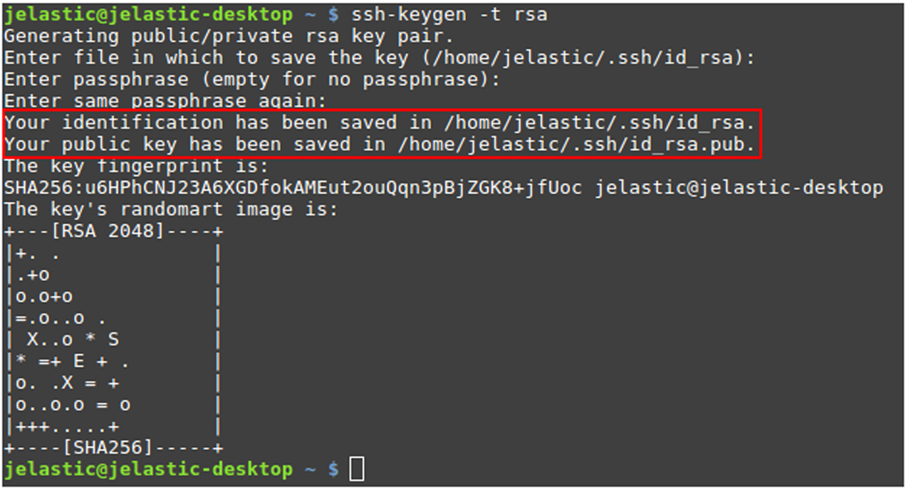 2. Vous pouvez visualiser la valeur des clés SSH publiques et privées avec la commande cat (l'emplacement exact est encadré dans l'image ci-dessus). Par exemple :