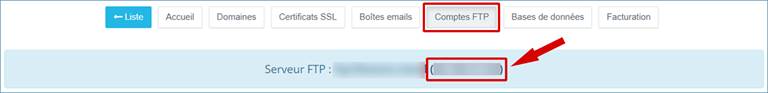 - Hôte FTP : vous le trouverez dans votre Espace Client, rubrique Services >> Flexone >> Détails >> Comptes FTP