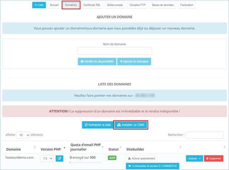 Lisez aussi notre aide « Gestion des domaines ».