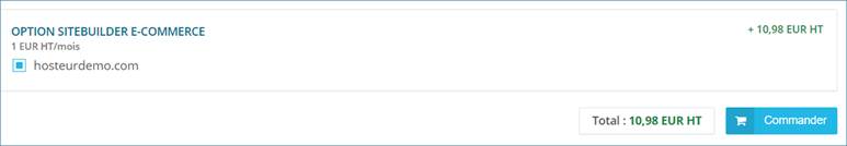Dans la page qui s’ouvre (options et ressources supplémentaires disponibles), cochez l’Option sitebuilder e-commerce et cliquez sur le bouton Commander.