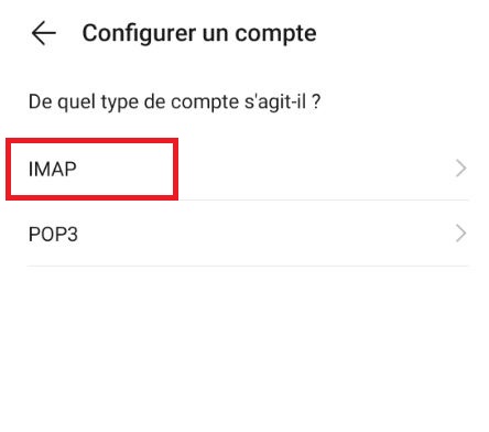 Choisissez IMAP :