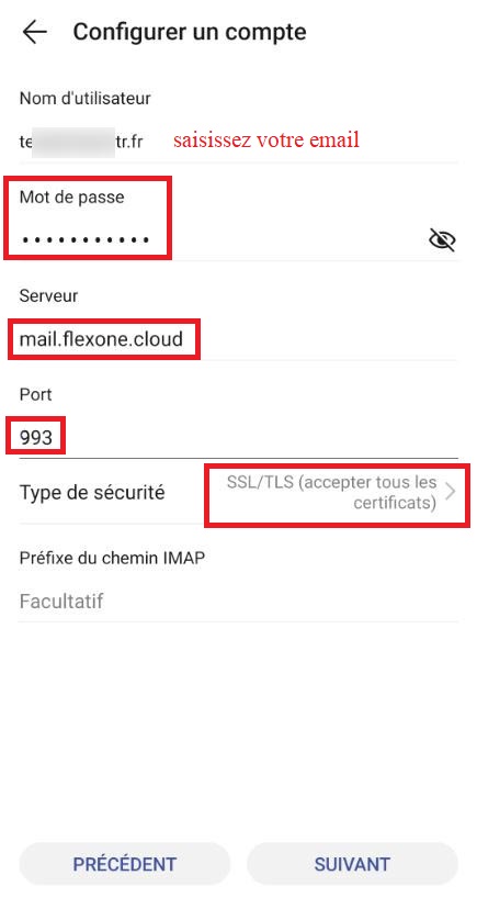 - Type de configuration : IMAP