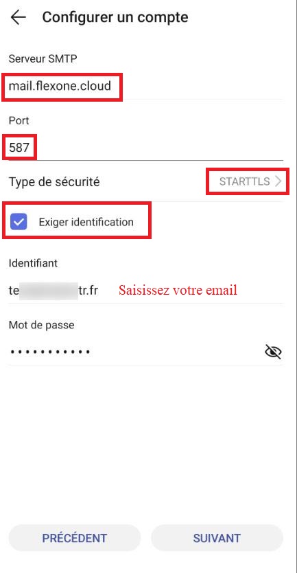 - Serveur SMTP : mail.flexone.cloud
