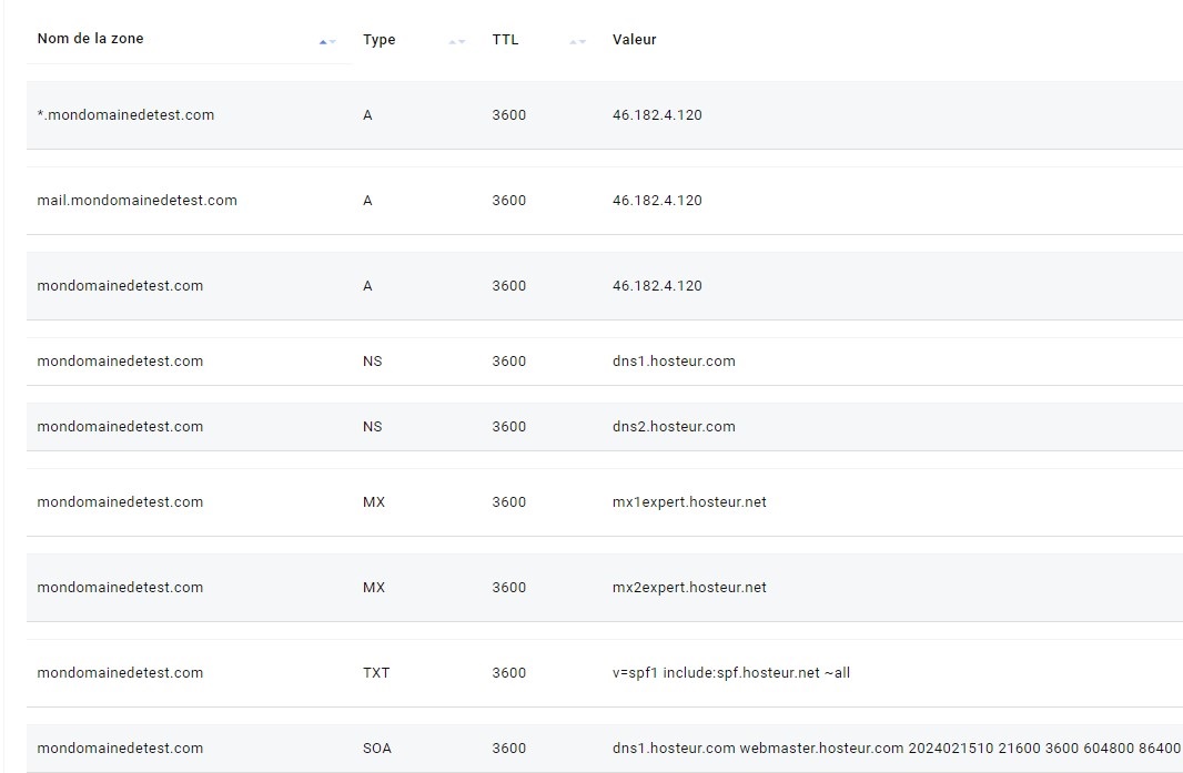 Important : La zone mail.domaine.com devra toujours être 46.182.4.120, même si vous devez utiliser 46.182.4.115 pour les autres zones de type A.