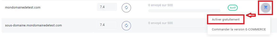 Au niveau de la liste des domaines vous verrez une icône en forme de caddie et vous pourrez choisir l'option gratuite ou bien la version payante pour les sites E-commerce :