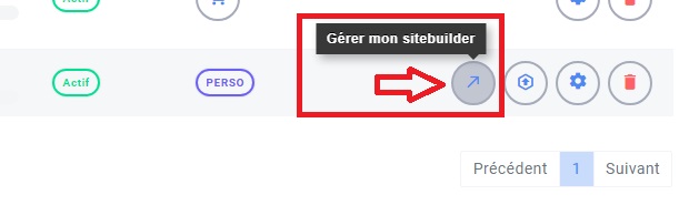4. Cliquez maintenant sur le bouton bleu avec une flèche, qui se trouve toujours dans la colonne Sitebuilder.