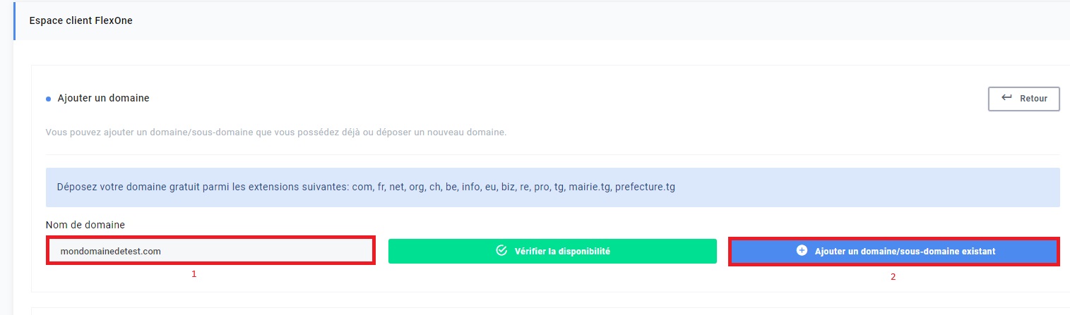 Dans ce document, nous avons déjà créé et ajouté un domaine dans Flexone.