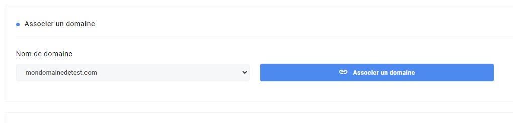 Autre possibilité : Si votre nom de domaines est déjà enregistré chez Hosteur et fait partie de votre liste de domaines dans votre compte client, vous pouvez aussi l'associer directement via la rubrique "Associer un domaine" :