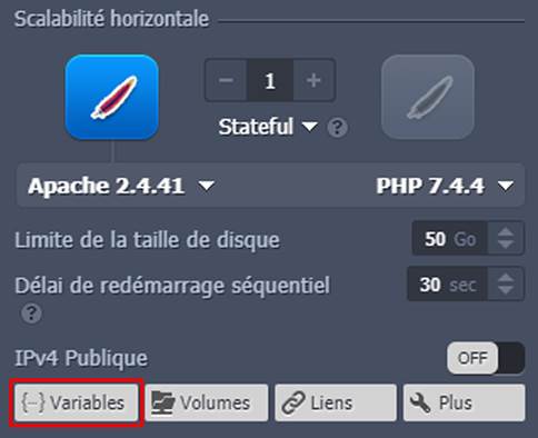 1. Cliquez sur Nouvel environnement dans votre tableau de bord RAGNARØKKR, sélectionnez la pile logicielle requise et cliquez sur le bouton Variables (dans la partie Scalabilité horizontale).