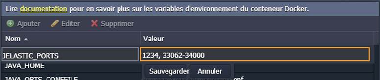 2. Fournissez (Ajouter) une nouvelle variable JELASTIC_PORTS dans le format suivant :