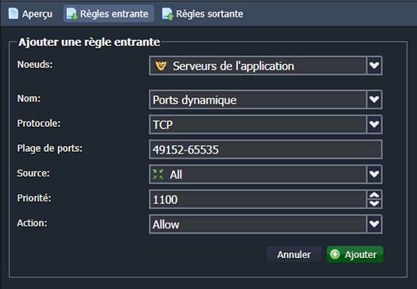 Lors de l'ajout d'une nouvelle règle de pare-feu, les paramètres suivants doivent être définis :